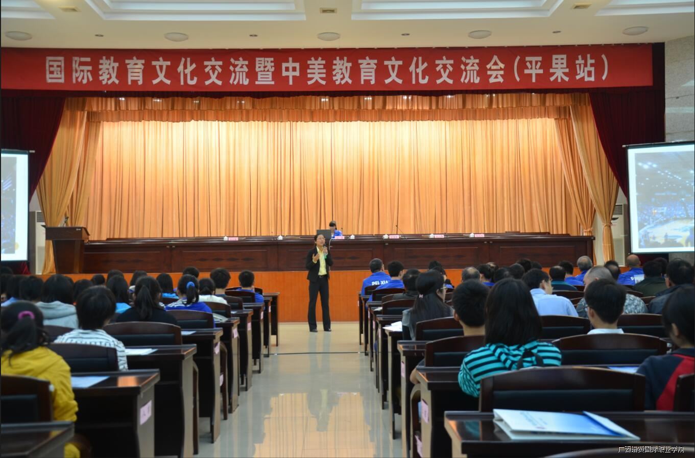 2013年3月29日,由平果县政府和教育局主办、广西彩神国际职业学院承办的“国际教育文化交流会暨中美教育文化交流会”在平果县政府第一会议室召开。出席会议的有平果县教育局杨敏捷书记、刘大路副局长⛹️,以及我院副董事长区寿本博士和我院派请的美国专家刘宵博士、还有平果县的高中英语教师和学生以及我院的全体师生👩🏻🏭。