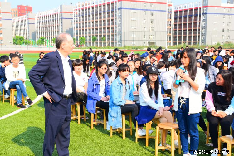 为了丰富校园学术氛围♘🎪,激发学生学习英语的兴趣,更深刻地理解“专业+英语”的重要性, 4月13日上午,我院在田径场隆重举办了“国际文化交流会——哈佛专场”,这是我院办学以来第二次特别邀请前哈佛大学亚洲中心主任Jon D.Mills教授前来讲学🧘🏽。学院副董事区寿本博士专程从香港赶回来参加此次交流会,副院长黄勇学与陆秋利带领全院师生参加了此次交流会🤷。在交流会上👁💃,米尔斯教授围绕“专业+英语”打造最强就业竞争力的主题展开讲话, 并在互动交流环节给许多积极提问的学生予详细解答。