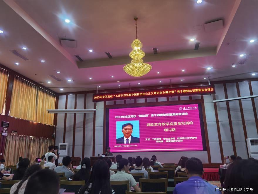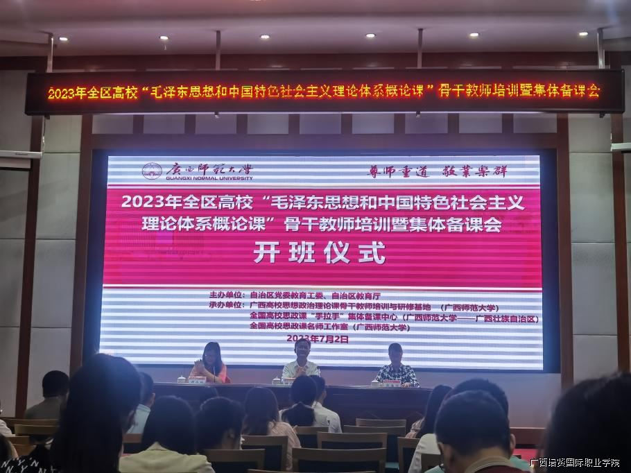为深入贯彻落实习近平总书记在学校思想政治理论课教师座谈会上的重要讲话精神,提高新时代学校思想政治理论课的实效性,进一步加强全区高校思政课教师队伍建设,不断提升思政课教师素质能力,按照《自治区教育厅办公室关于举办2023年全区高校“毛泽东思想和中国特色社会主义理论体系概论课”骨干教师培训暨集体备课会的通知》要求🫐,2023年7月1日至6日,梁月新老师代表广西彩神国际职业学院思政部参加了本次培训活动👳🏽♂️。
