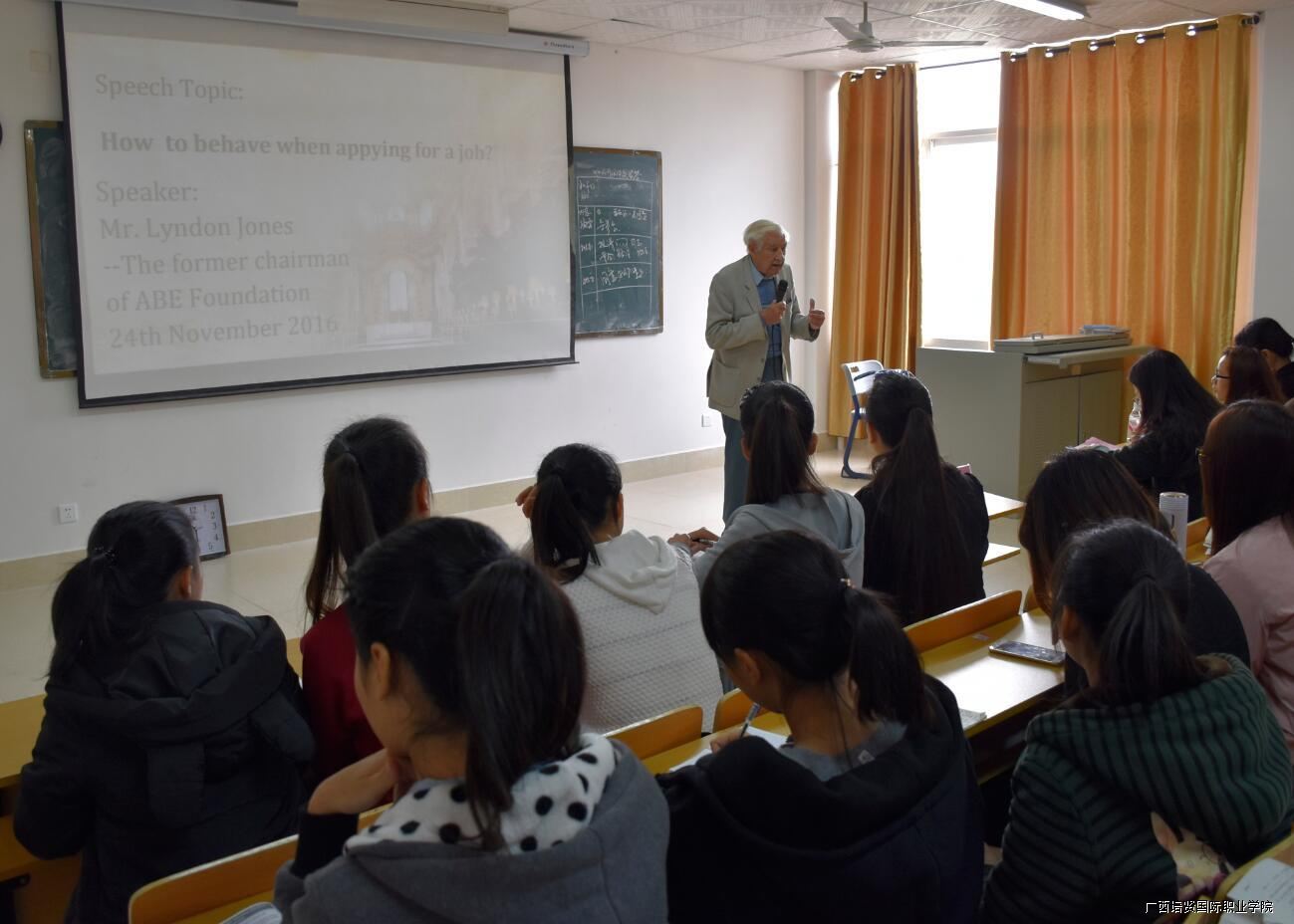 我校特邀英国ABE前任基金会主席Mr.Lyndon Johns举办“How to behave when applying for a job”特别讲座