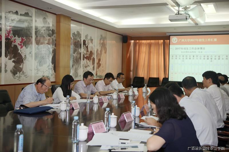 21日下午🤎,督查组深入广西大学👩🚀,听取广西大学2017年自主招生和特殊类型招生等工作汇报🧛♂️,检查指导有关工作𓀖。