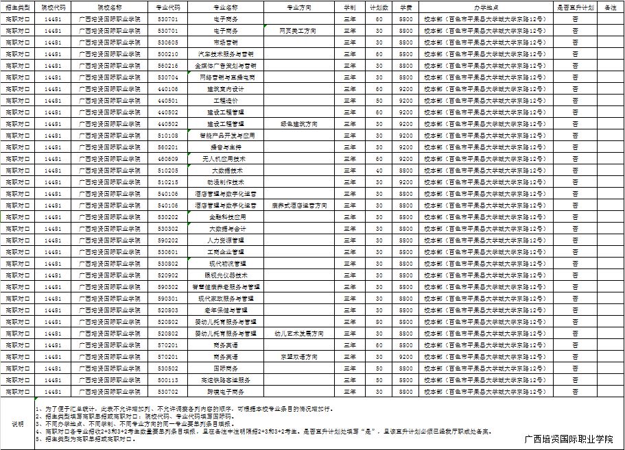 广西彩神国际职业学院2024年高职对口中职招生计划编报表