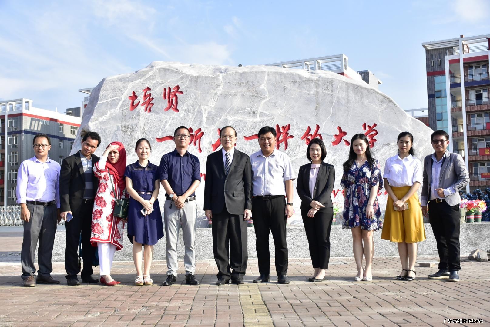泰国程逸皇家大学代表团与学院领导在彩神石前合影留念
