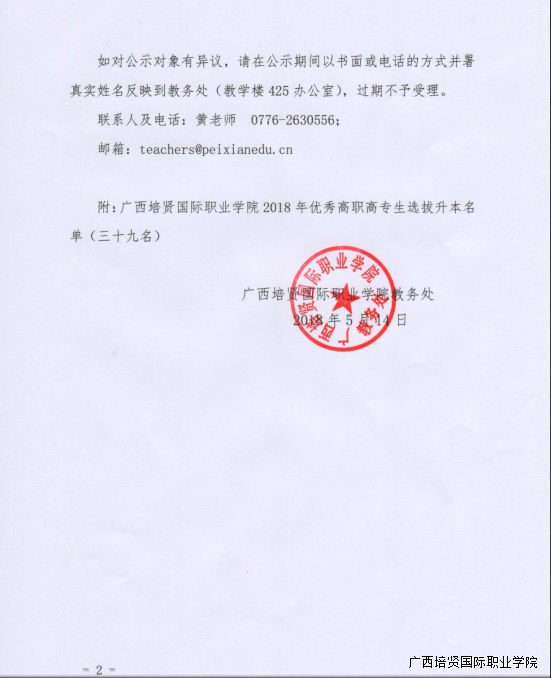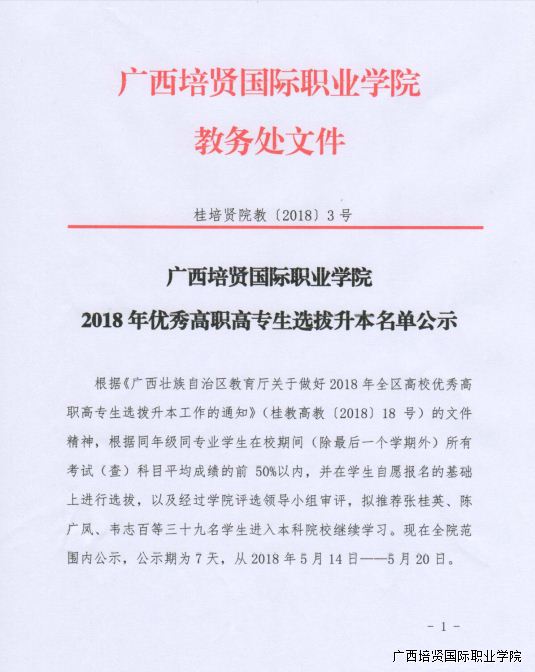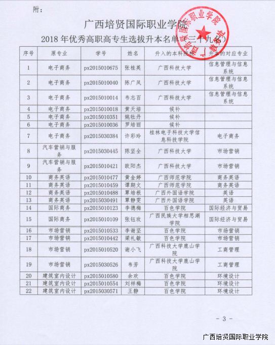广西彩神国际职业学院2018年优秀高职高专生选拔升本名单公示