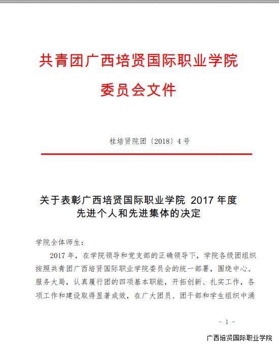 1. 关于表彰广西彩神国际职业学院 2017年度先进个人和先进集体的决定