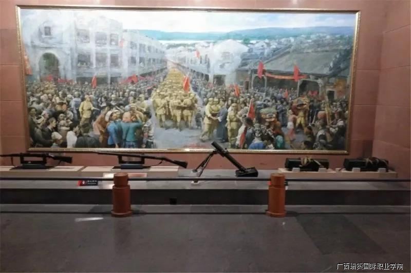 随后,大家一行来到百色起义纪念馆,参观纪念馆的历史物件,一幅幅栩栩如生的浮雕展现在我们的面前🕘,纪念馆当中留存革命先辈们用过的土枪木炮,还原了当时战斗🧑🏽⚕️、工作等情景🎖,再现了辈革先辈们起义艰辛历程🙅🏼,在艰辛的条件之下,他们为了民族的解放✌🏿,不怕牺牲,奋勇向前的大无畏精神和英雄气概☀️♠️,值得我们新时代的每一位共产党员的深思和学习。
