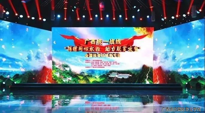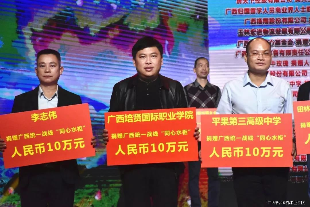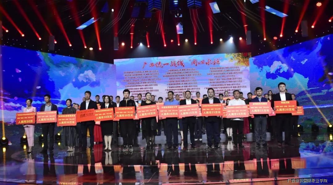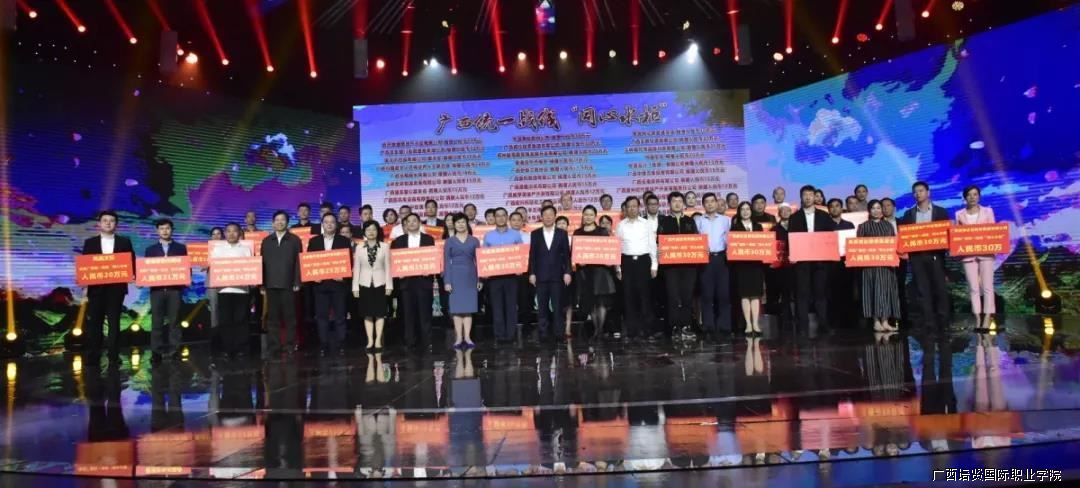 学院副院长黄勇学代表广西彩神国际职业学院出席此次节目,并以学校的名义为广西统一战线“同心水柜”公益项目捐赠人民币10万元,为饮水困难的贫困山区群众献爱心,为全区脱贫攻坚助力。