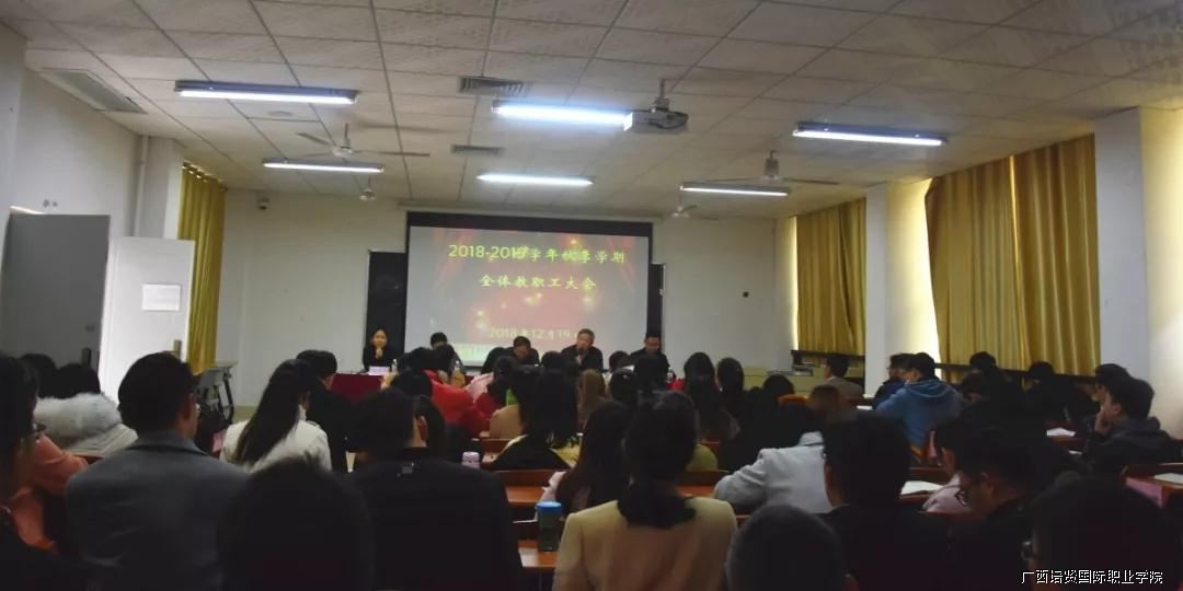 2018年12月19日下午16:30⚧,我院在110学术报告厅召开2018—2019学年第一学期全体教职工大会。学院副董事长区寿本,院长吴开珊👨🔧,常务副院长杨松,副院长于灏洋、陆秋利出席本次大会。学院全体教职工参加会议👲🏿。