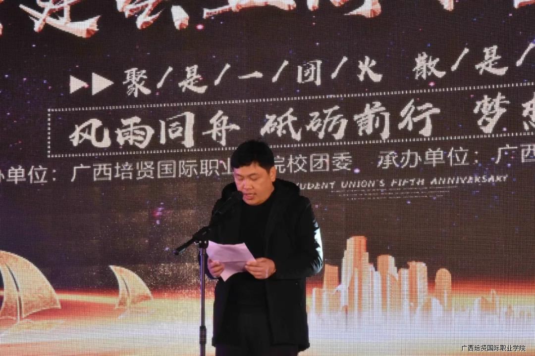 黄勇学副院长在致辞说道:校学生会是秉承“自我服务💘,自我管理,自我教育🏩,自我监督”的宗旨⛄️,积极开展各项活动,不断创新且🙅🏽♀️,取得了优异的成绩。同时也希望全体学生会成员要发挥好团结、引领广大青年学生的积极作用🤌🏼,不忘初心💁🏽👈🏻,发挥好学生会的组织带头作用♻️;最后祝愿广西彩神国际职业学院建会五周年暨辞旧迎新晚会取圆满成功!