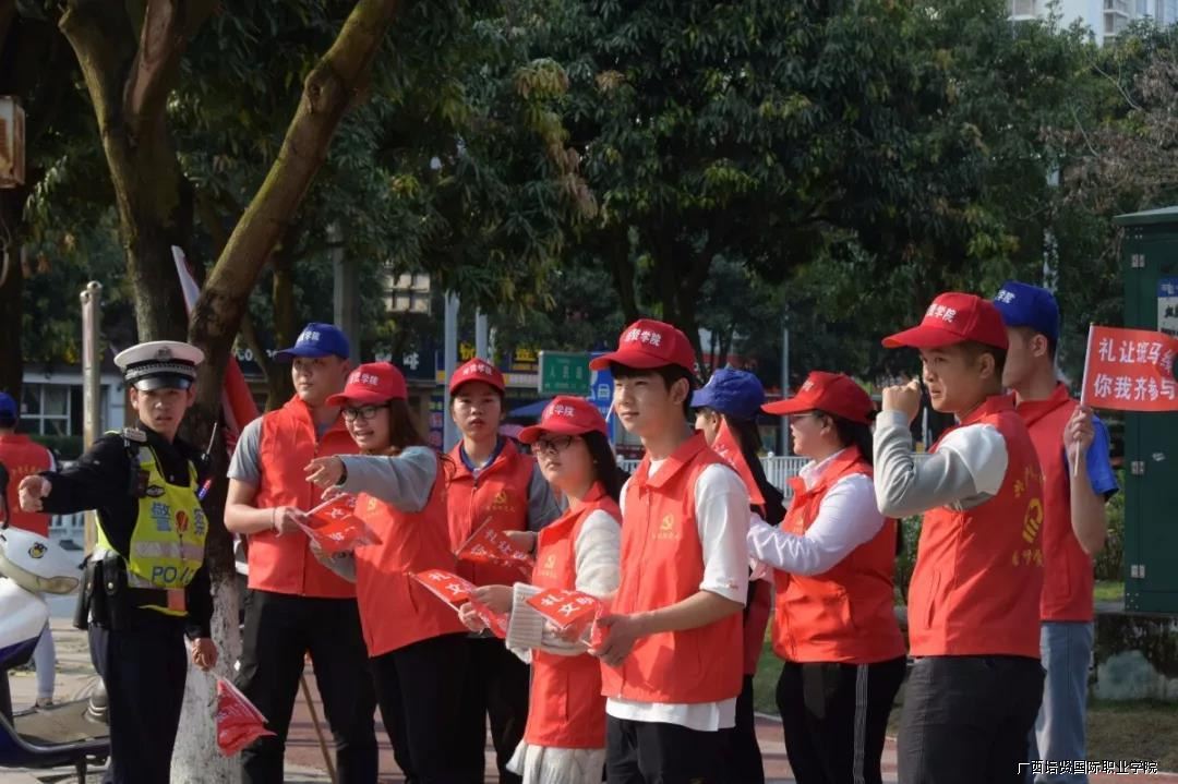 为贯彻落实习近平新时代中国特色社会主义思想和中共十九大精神,营造学雷锋志愿服务气氛,培育和践行社会主义核心价值观,共同营造文明和谐的社会环境👩🚒,2019年3月20日🙇🏻,我校与平果县公安局交通警察大队在平果文化广场开展“文明出行”实践活动。我校外国语学院分团委副书记张世堂老师带领外国语学院学生会的成员参加此次活动。