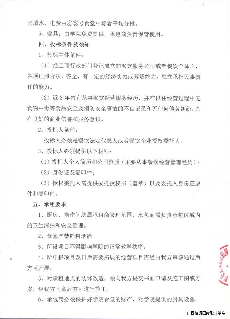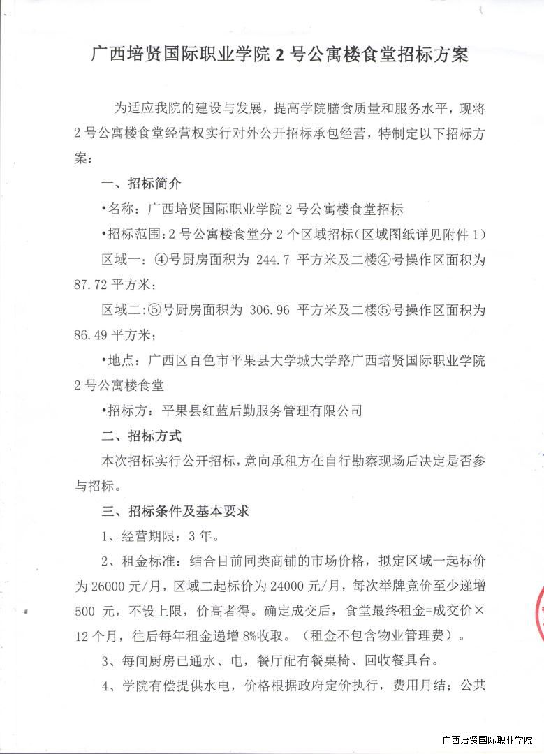广西彩神国际职业学院2号公寓楼食堂招标方案