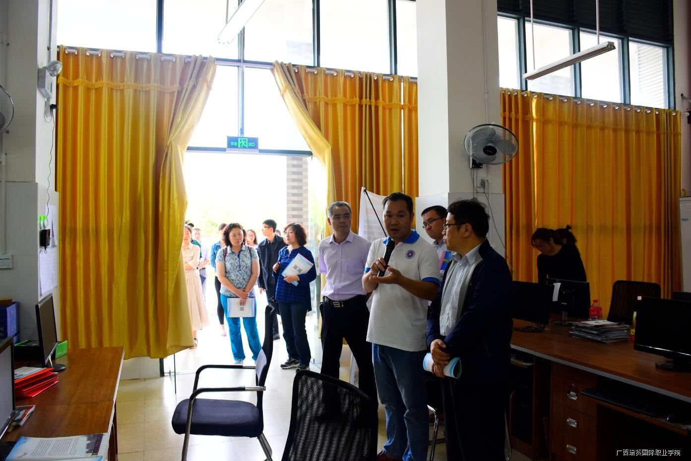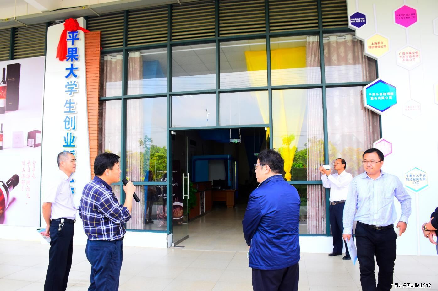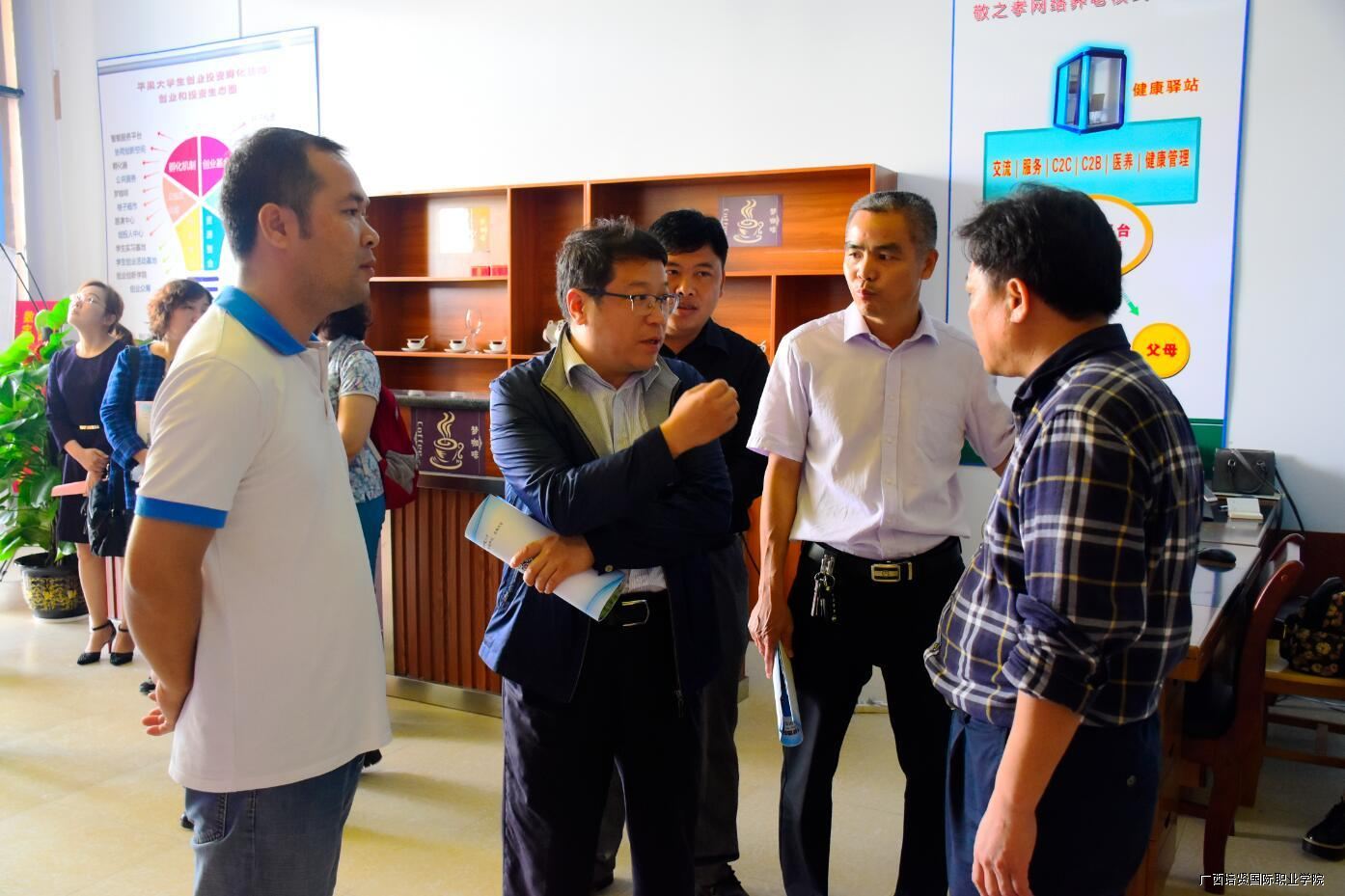 平果县大学园区管委会主任杨敏捷同志(左二)介绍创业梦工厂
