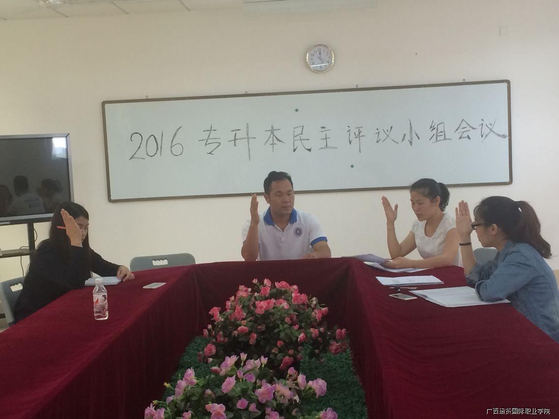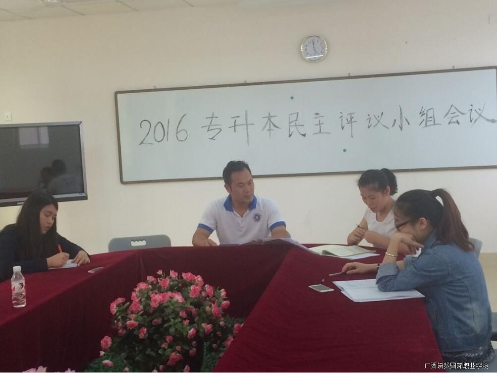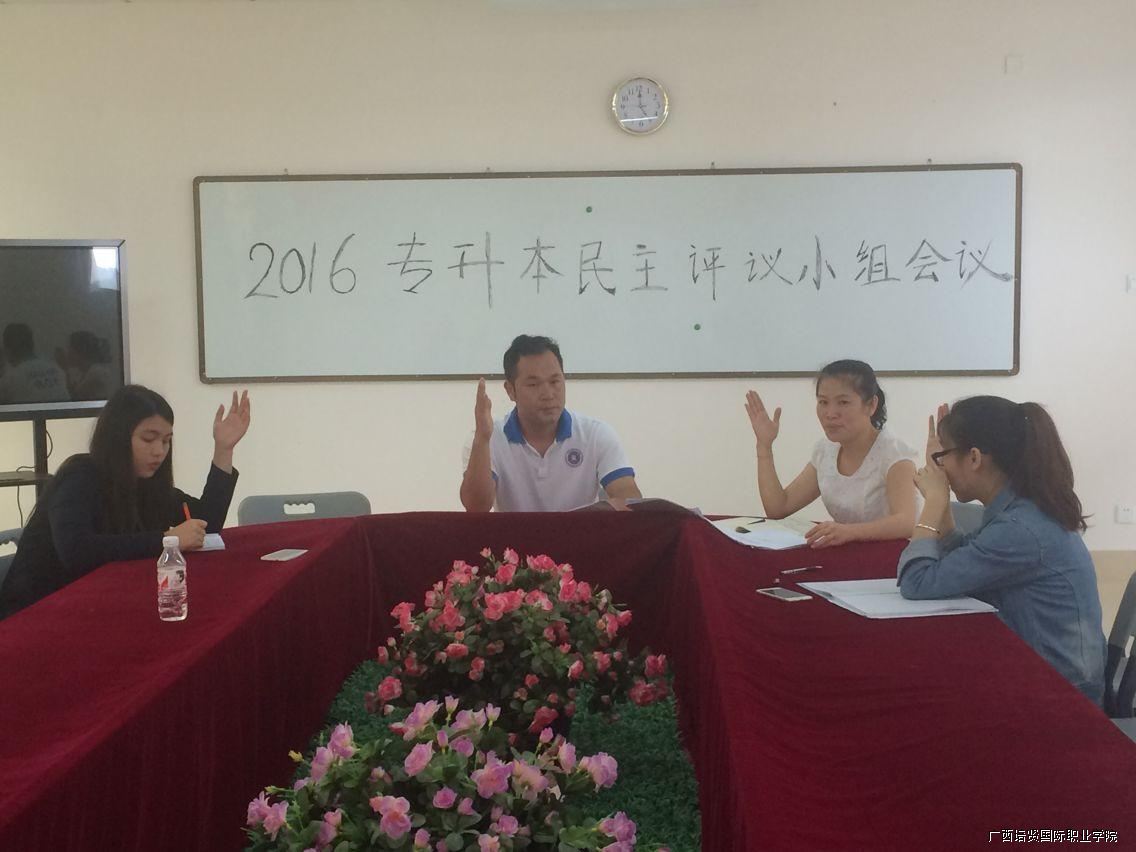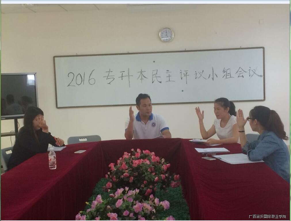 2016年4月22日下午,何副院长以及各系主任,召开2016专升本民主评议小组会议
