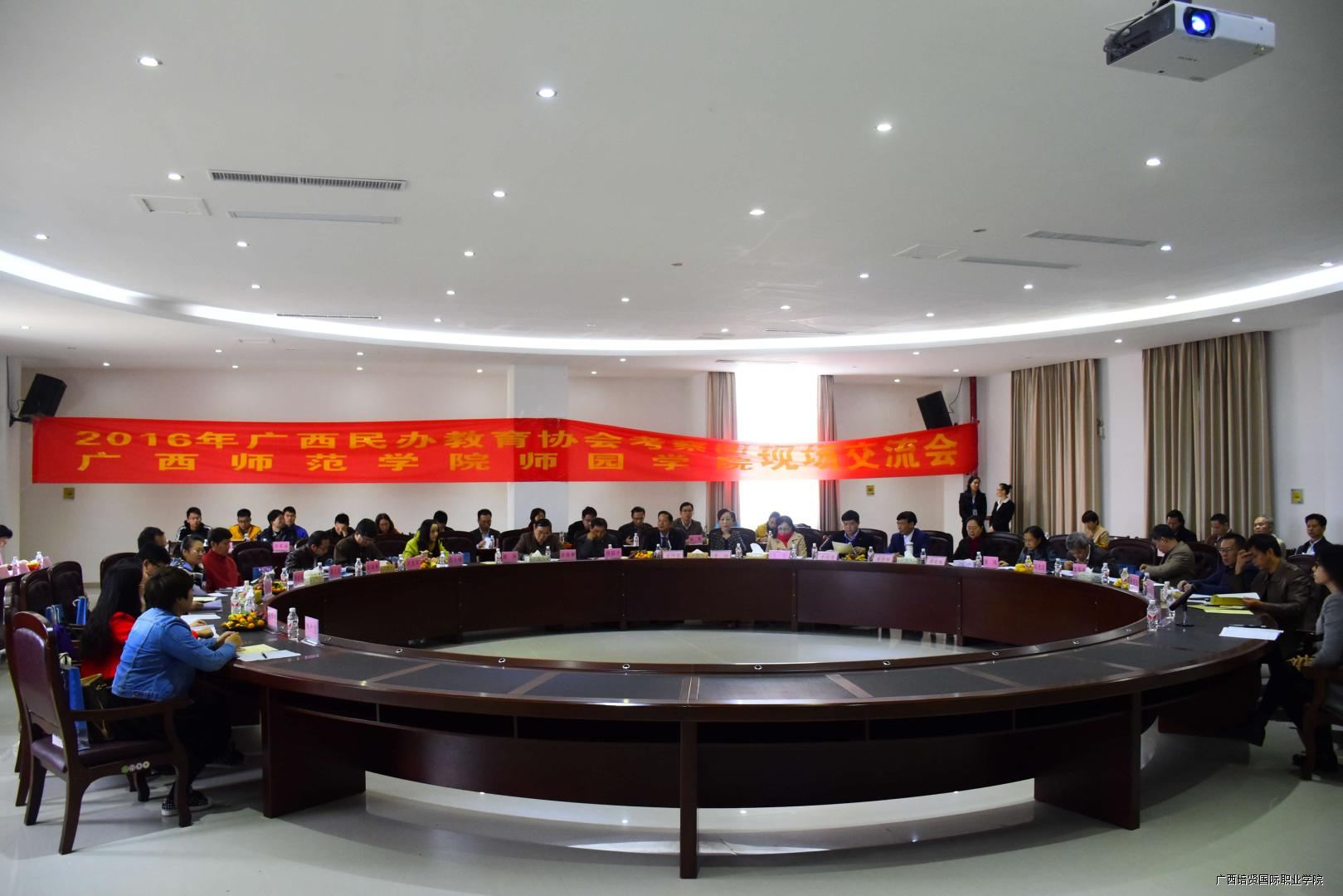 2016年11月10日—11日,我校参加了由广西民办教育协会组织的考察活动。此次活动得到广西民办教育管理办公室主任蒋国平同志、广西民办教育协会顾问孙海潮同志等领导的大力支持👸🏿🤲,蒋国平主任亲自带队🔣,率南宁学院、广西民族大学相思湖学院等多所高校代表团先后到广西师范学院师园学院、广西英华国际职业学院及北海艺术设计学院进行考察学习。我校何国庆副院长一行7人就以上院校的办学思路、人才培养、校园管理🚴🏽、实训室建设等进行参观考察👩👧👦。各单位非常重视🛄🙍🏻♀️,热情接待了考察团。 在广西师范学院师园学院召开的座谈交流会现场