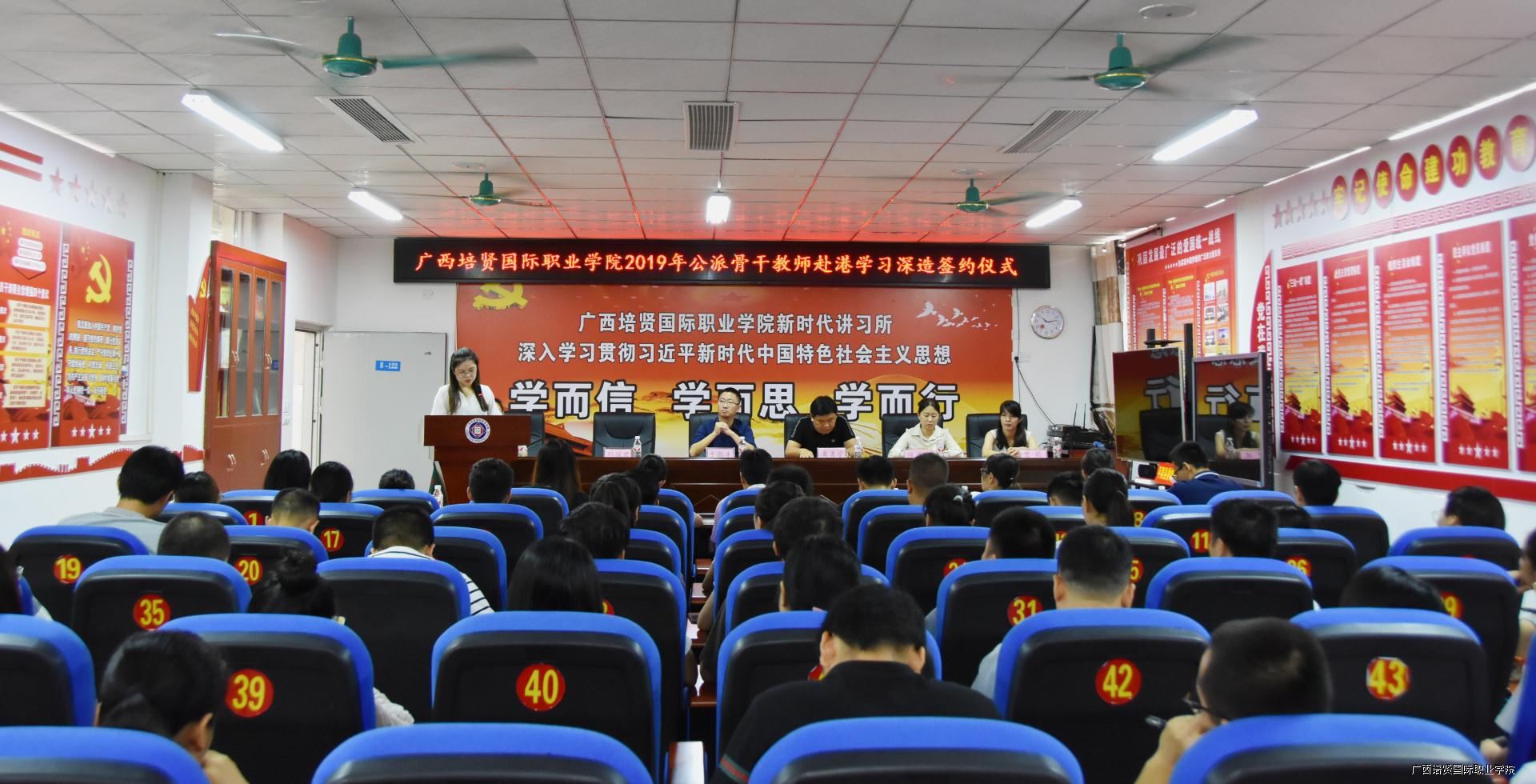 2019年8月16日我校在二号教学楼讲习所隆重召开了关于2019年公派骨干教师赴港学习深造签约仪式,参会的主要领导及人员分别有🦻🏼:我校副校长黄勇学,副校长于灏洋🧛♂️,各处室负责人以及全体在岗教职工✉️,此次签约仪式由陆敏倩老师主持🔣。