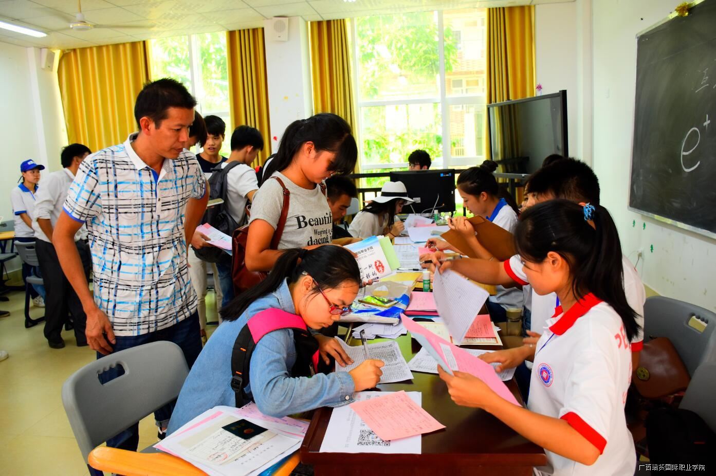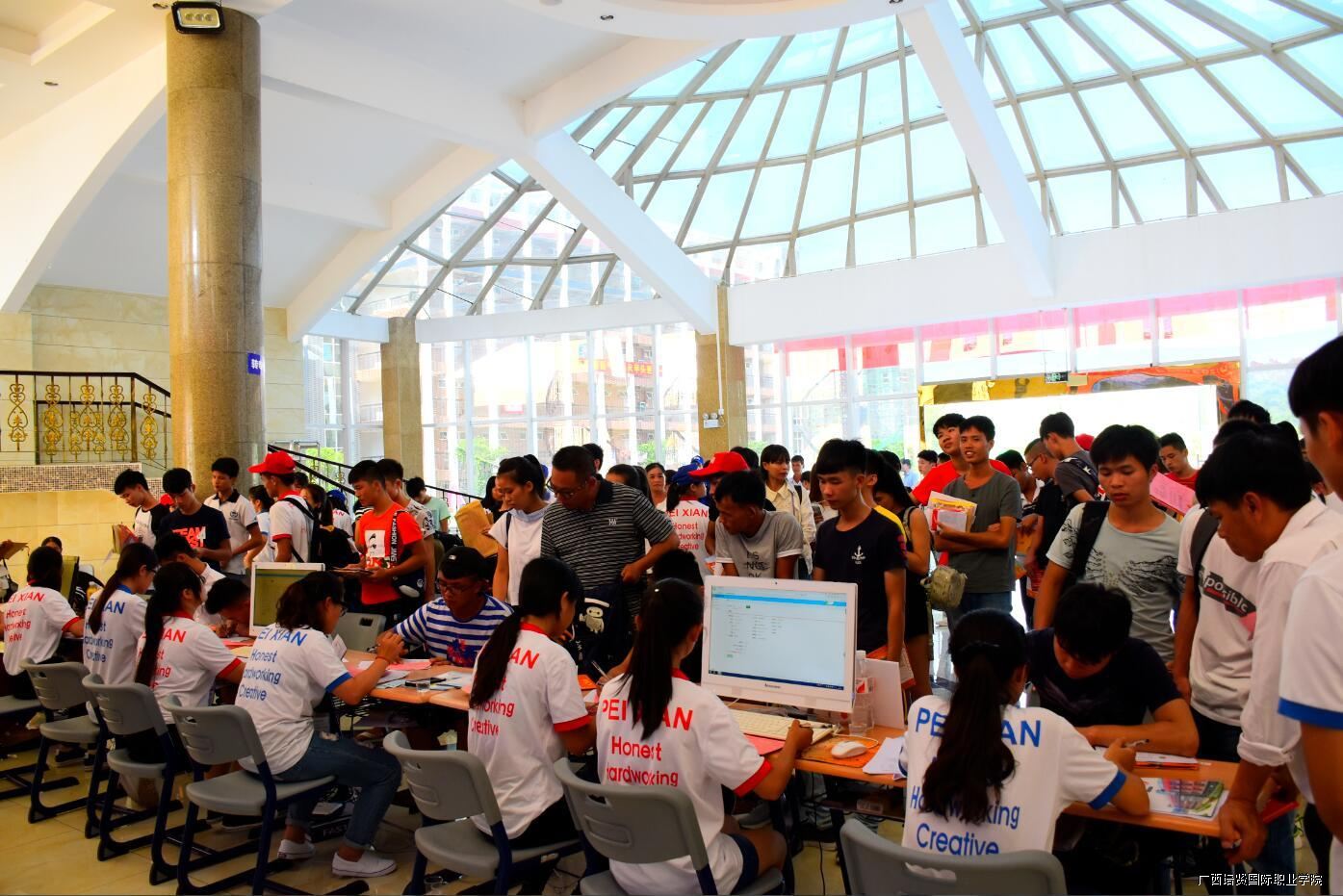 8月29日👠,广西彩神国际职业学院正式迎接2016级新生。免费接机接站、行李保管、休息室提供WIFI🖨、为申请缓交学费的困难学生开辟绿色通道……为了学生无忧,家长放心,学校想尽“招数”为新生和家长们解决实际困难🥬,提供周到服务👂🏻。