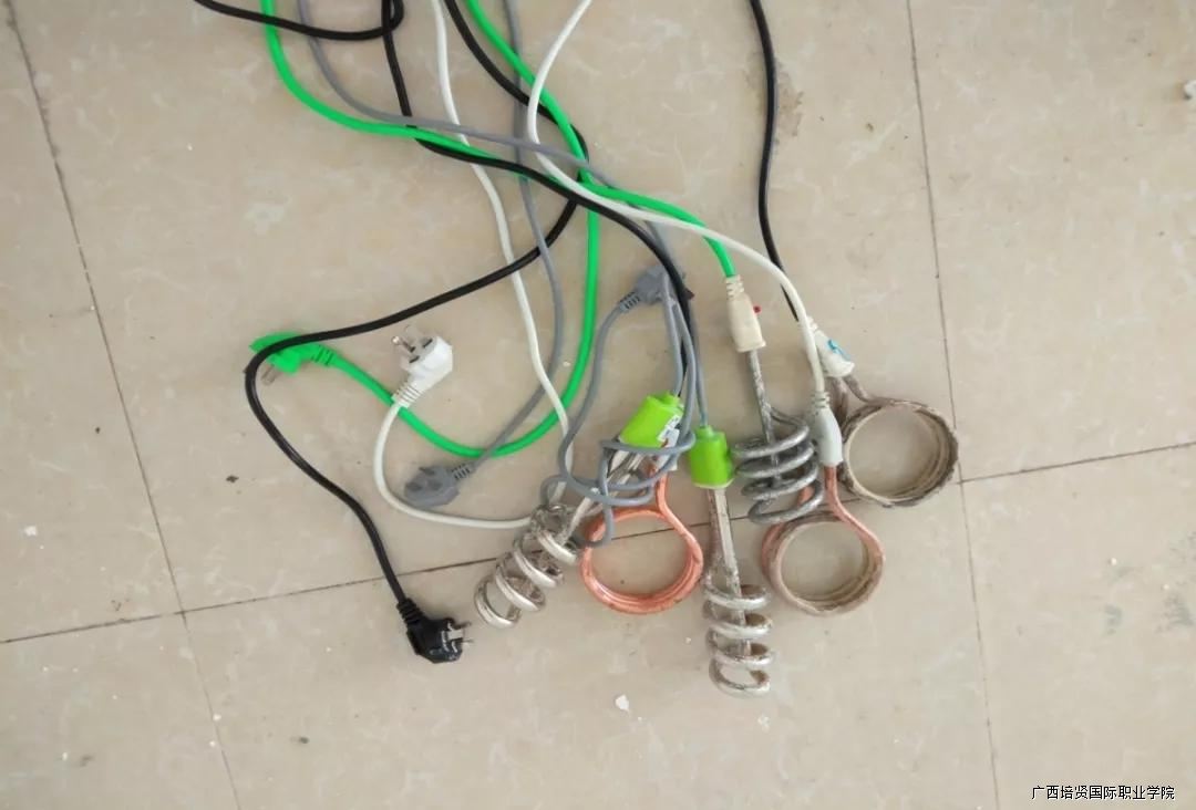 然而🙅🏿,宿舍用电需谨慎🤵♂️,违规用电严重威胁着同学们的人身财产安全。为了学生宿舍安全以及确保学生的生命与财产安全🙁,我校从上周开始开展“不忘初心、牢记使命”学生宿舍大整治专项行动,对学生宿舍用电安全进行了细致检查🙎🏿♂️,查处并没收大量违禁物品和大功率电器🙍🏽。