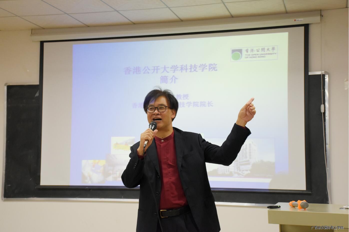 为体现我院“国际接轨”办学理念,让学生了解不同体制下高等教育的发展情况,7月5日晚,我院特邀香港公开大学科技学院院长何建宗博士到我院举办“香港高等教育的发展”专题讲座🪰。我院副董事长区寿本博士、名誉董事长李明庆女士及学院其他领导出席讲座。