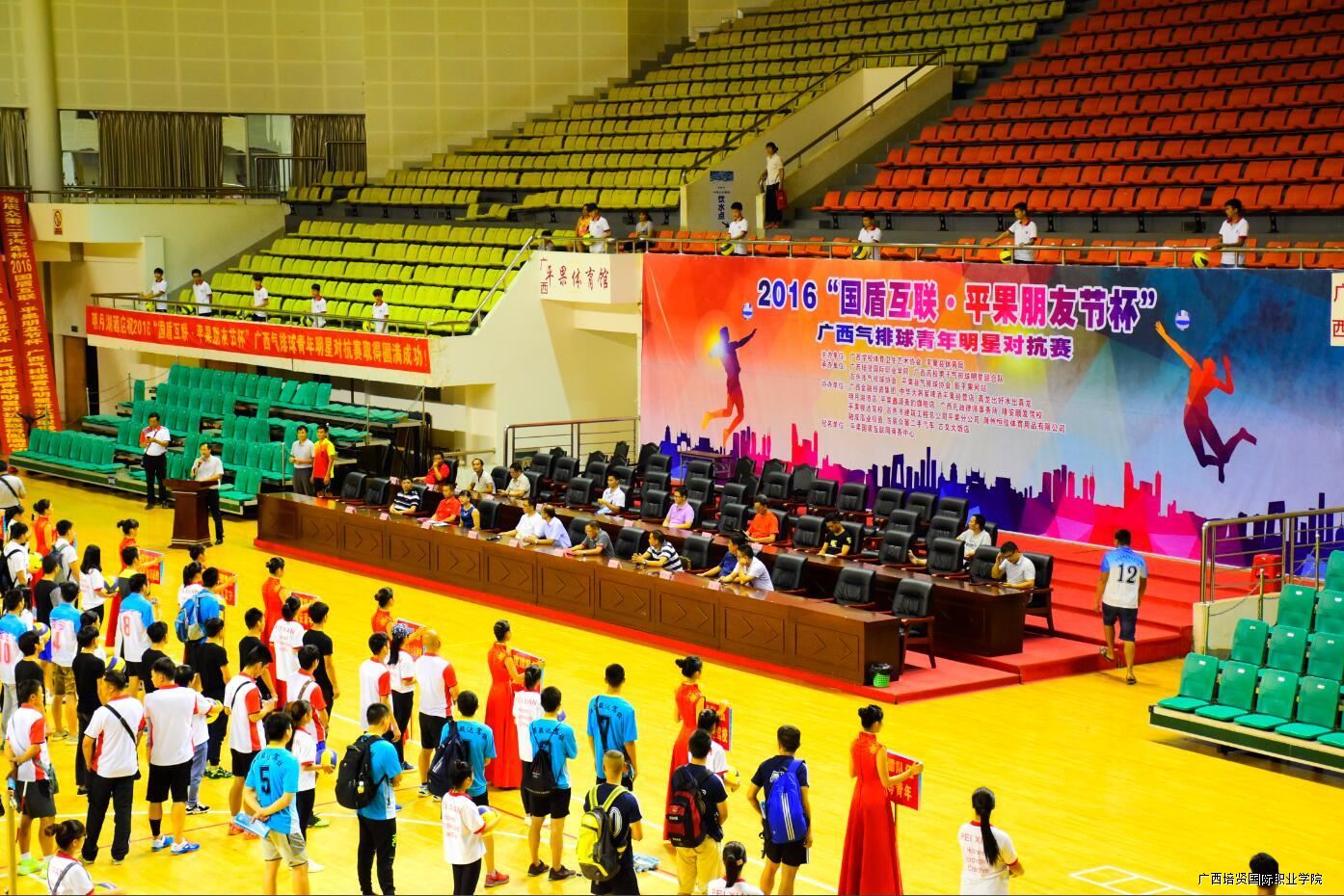 彩神学子亮相2016“国盾互联·平果朋友节杯”广西气排球青年明星对抗赛开幕式