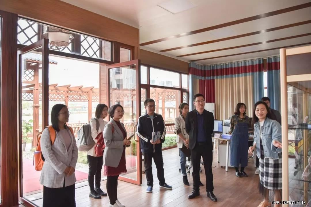 我校外国语学院商务英语教研室主任黄良安热情接待了来宾,并带领来宾参观了我校两栋综合性教学大楼🦖、语音实训室、国际交流中心等教育教学设施👨🏼🏭。优美的校园环境,独具魅力的校园文化,设备齐全的实训室给来访的来宾耳目一新的感觉,得到了各位参观来宾的赞赏。