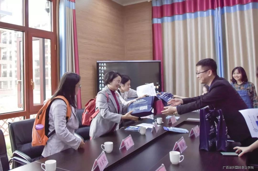 参观结束后,两校代表在国际交流中心进行座谈工作交流🚣🏼,我校副校长兼国际学院院长于灏洋、外国语学院院长助理覃婷、外国语学院商务英语教研室主任黄良安💧、国际学院院长助理李燕华、人事处干事徐春鸿共同参加了座谈会🤍。