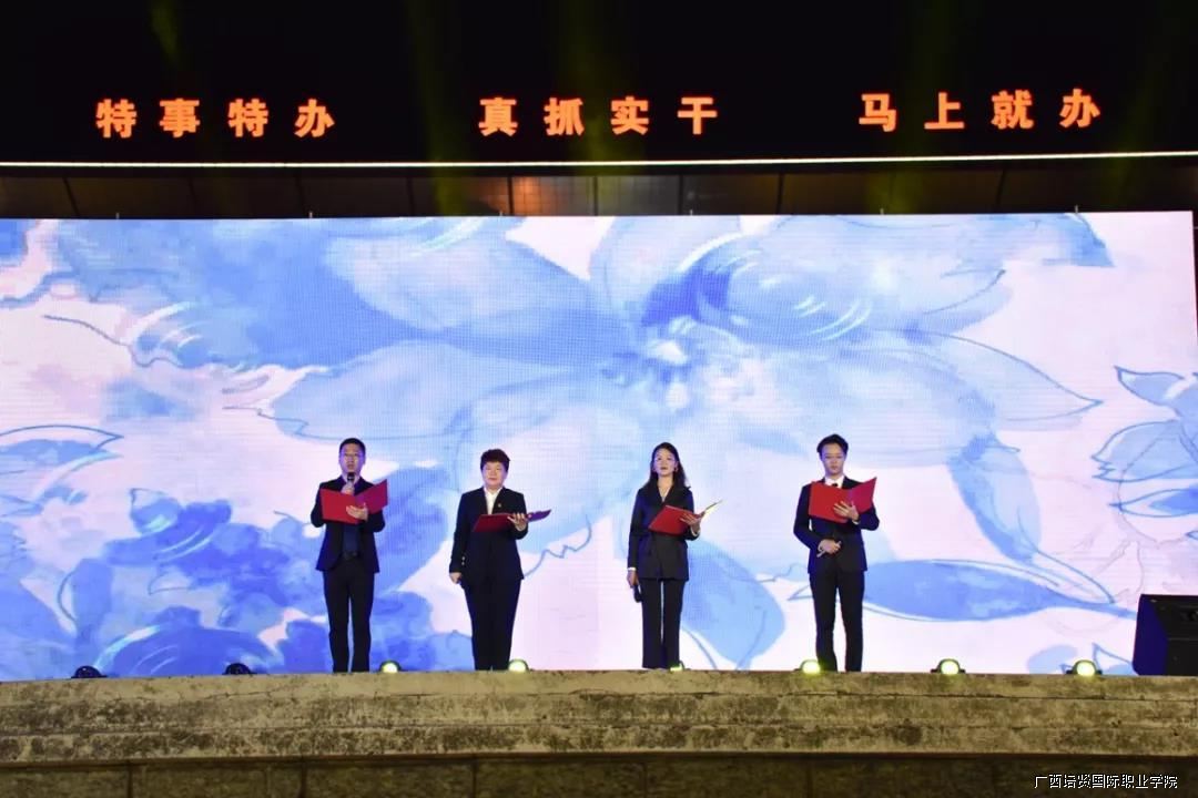 为深入学习习近平总书记关于弘扬中华优秀传统文化重要论述♥️⚧,推动我校“不忘初心、牢记使命”主题教育广泛深入开展,围绕传承和弘扬中华优秀传统文化,1月9日晚💄,我校党委书记🥀🙅♀️、督导专员谭波,副校长于灏洋率教师代表前往平果文化广场参加由中共平果县委员会、平果县人民政府主办的平果民营企业家“听党话🤳🏻、跟党走”新春诵读经典晚会。
