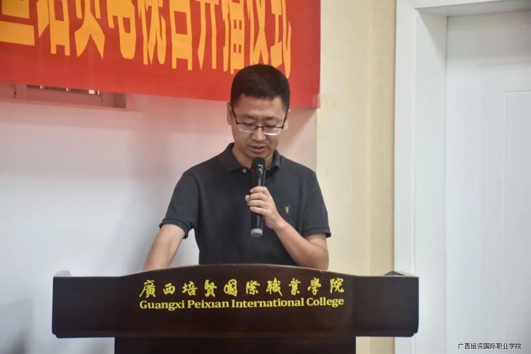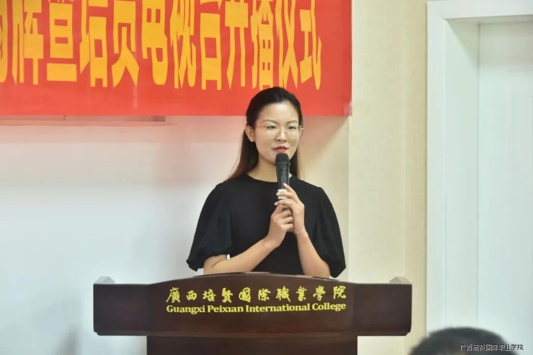 广西彩神国际职业学院副校长于灏洋教授为录播实训室揭牌仪式致辞。于灏洋副校长说到,设立实践教学基地🦹🏽♀️,既是机遇,也是挑战。要充分注意校园电视台在舆论导向、信息传播的特殊性和重要性。我们要以录播实训室作为依托,把播音与主持专业办出特色,并辐射带动其他专业的特色发展⌛️,从而促进我校各项教育教学工作的有序开展,为我校教育教学工作树立一个新的典范。同时,于灏洋副校长预祝彩神电视台办出水平,办出质量,办出特色🚵。祝愿我校职业教育事业的明天更加辉煌灿烂🍊!