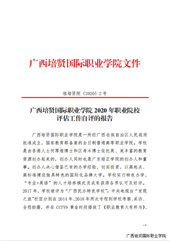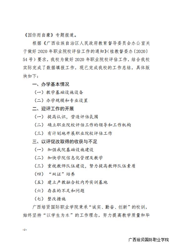 广西彩神国际职业学院2020年职业院校评估工作自评的报告