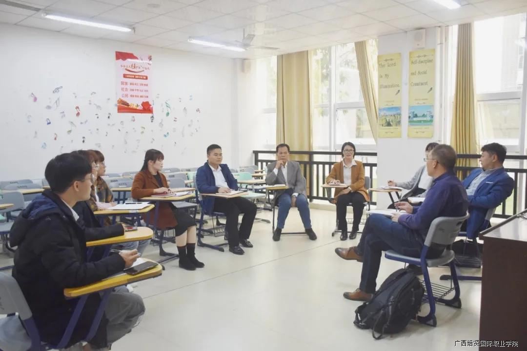 11月23日下午,广西高校思想政治理论课教学巡察组专家在组长百色学院党委副书记徐魁峰教授的带领下🧑⚖️,广西大学马克思主义学院杨通进教授、桂林电子科技大学马克思主义学院邓国峰教授、百色学院马克思主义学院院长韦顺国教授一行4人,莅临广西彩神国际职业学院开展思想政治理论课教学工作巡察😫。
