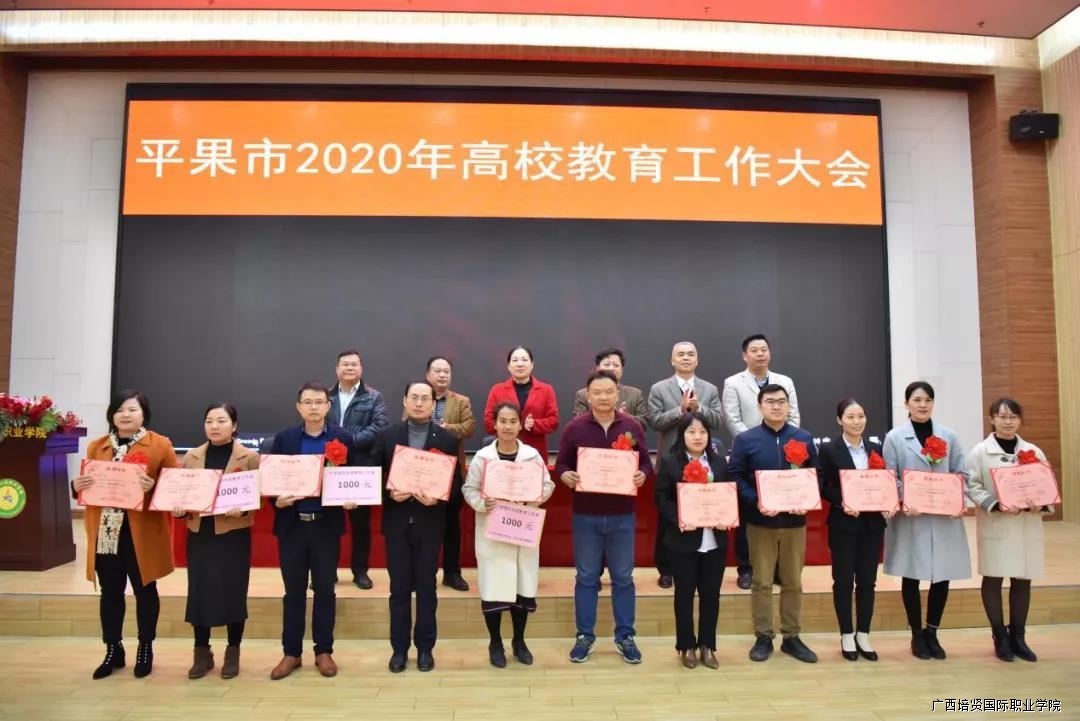 12月2日上午🎯,学校李锡武副校长带领我校50多名教师代表参加平果市2020年高校教育工作大会,在大会上我校黄吉萍、王凤姬、谭岳霖三位同志荣获“高校先进教育工作者”表彰。