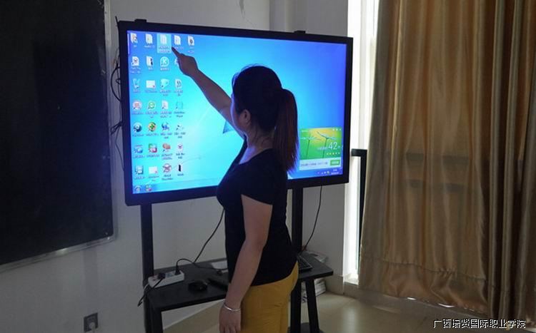 图为何老师检查小教室一体机