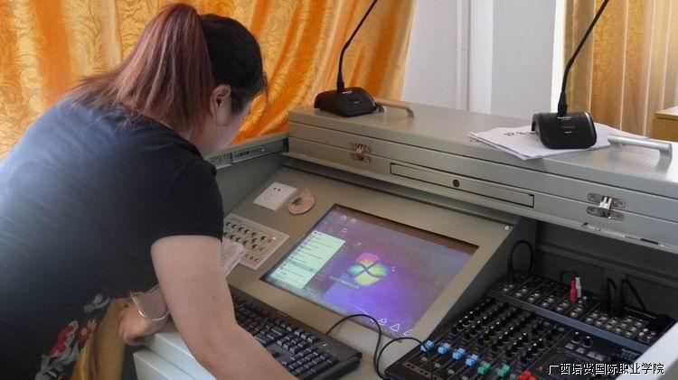 图为何老师检查语音室语音设备