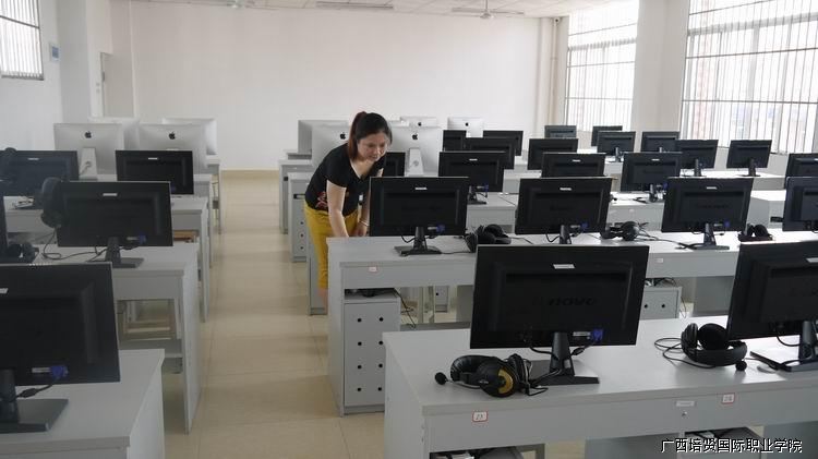 图为何老师检查电脑室电脑设备