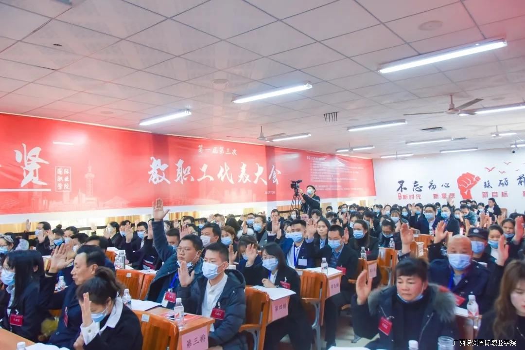 大会对题为《凝心聚力 奋勇前行 全面开启广西彩神国际职业学院高质量发展新征程》校长工作报告和《章程》(修订稿)🪠、《广西彩神国际职业学院第一届教代会第三次会议实施细则》、广西彩神国际职业学院第一届教代会第三次会议提案工作情况报告🫴🏼、《广西彩神国际职业学院工会会费管理规定》、第三届监事会成员提名名单进行举手表决🫸🏽。