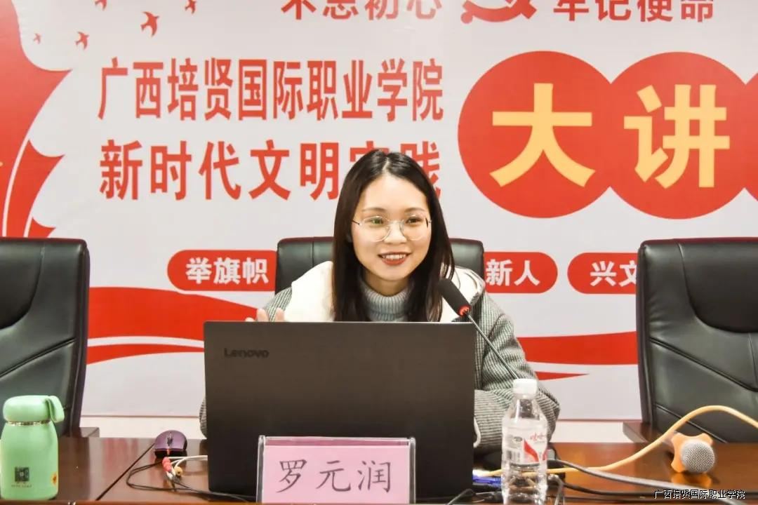 2020级网络营销、广告策划与营销辅导员黄肖榕代表全体辅导员作参加培训学习表态发言🧑✈️。她表示会怀抱初心和使命,积极开展学生工作,做好学生的良师益友🏄🏻♂️,助力新时代彩神学子积极进取、扬帆远航。