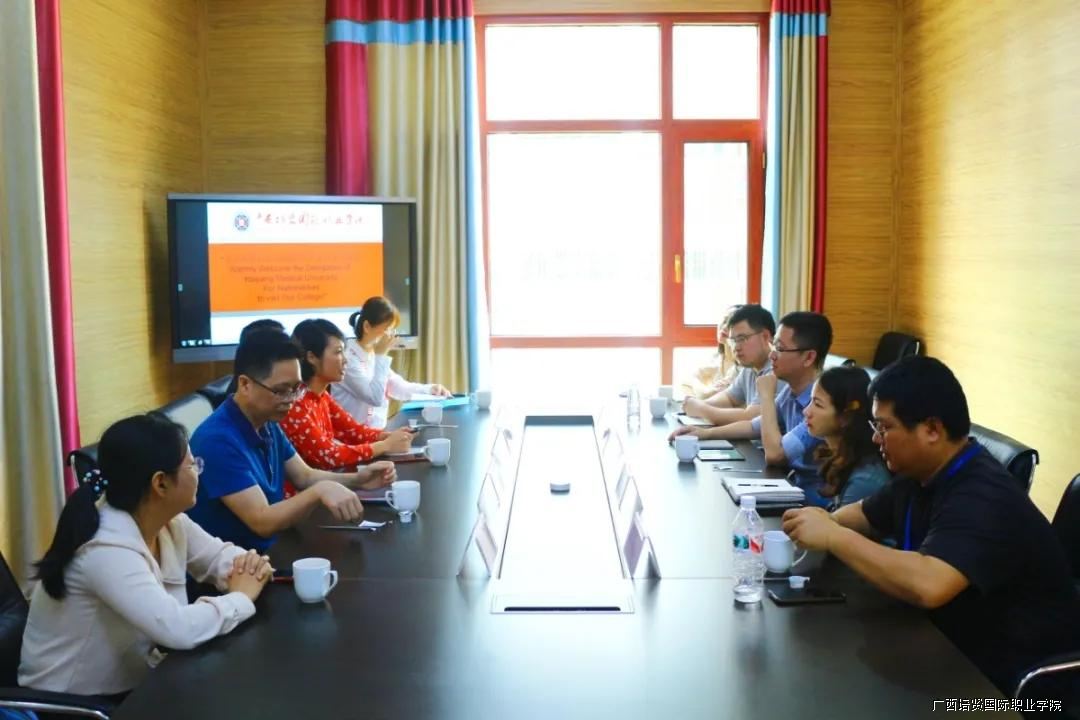 4月23日上午👨🏽🍼,为加强教学单位和教学实践基地的合作交流,加强两校实习生合作项目👨🏽🦱,右江民族医学院学校纪委委员🪁、国际语言文化教育学院党总支书记李玉群;学校党委委员、国际语言文化教育学院院长潘廷将🐥☮️;国际语言文化教育学院教授傅治夷;国际语言文化教育学院MTI中心负责人李金艳;国际语言文化教育学院办公室主任李稚琴;一行五人莅临我校考察交流🧑🏼🎤🧕🏼。我校副校长于灏洋副教授 🛖;外国语学院院长助理覃婷;公共基础部副主任农国显;国际学院院长助理覃严生;国际学院院长助理李燕华以及国际交流中心老师热情接待🤾♀️。