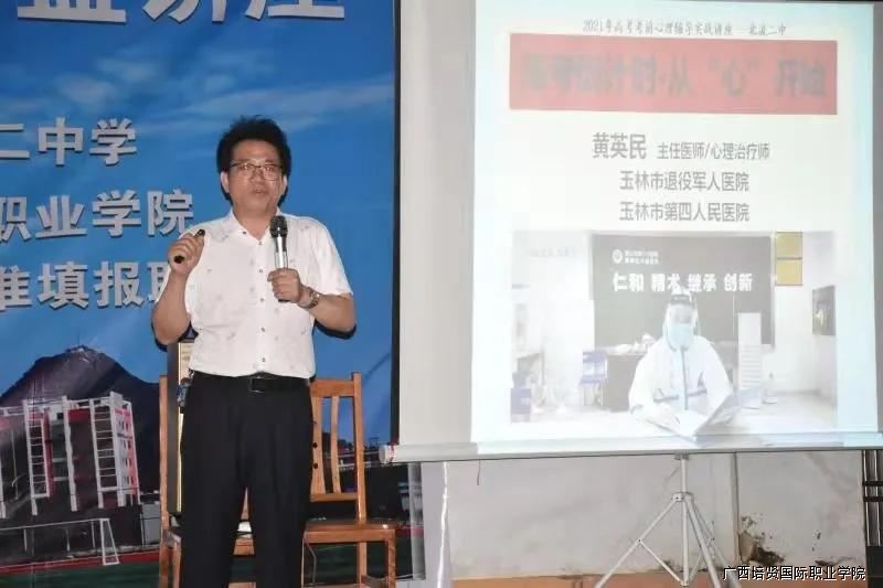 本次活动讲座特别邀请到广西医学会精神科分会常委、广西心理卫生协会理事、玉林市退役军人医院(玉林市第四人民医院)副院长,共青团玉林市青少年心理健康指导中心主任、援鄂抗疫英雄黄英民专家🫘。黄英民从备考心态的重要性和良好心态的科学依据入手,向北流第二中学的考生传授了保持健康备考心态的方法⚫️,帮助高三学生自我调节心理压力以获得健康心态轻松备考🔈👭🏼。