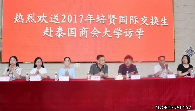 2017年7月21日上午🛻🗑,彩神学院师生在教学楼大厅举行主题为“感恩、珍重”的欢送会。学校领导、各位老师及学生代表,对此次去泰国商会大学访学的交换生表达祝福。