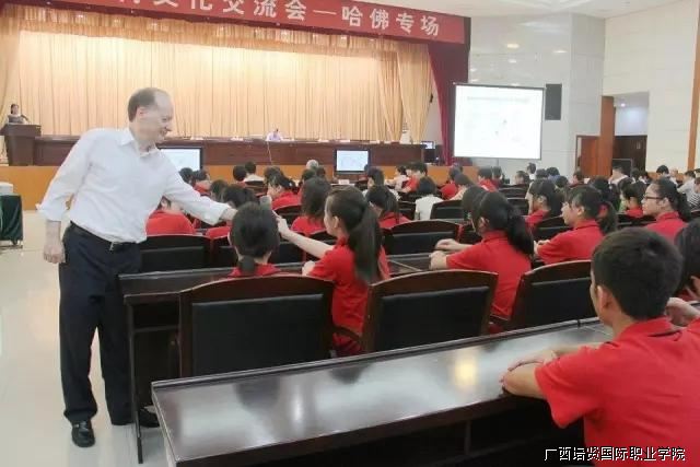 2014年,哈佛大学Jon D.Mills(米尔斯)教授在平果讲学亲密与彩神学子交流