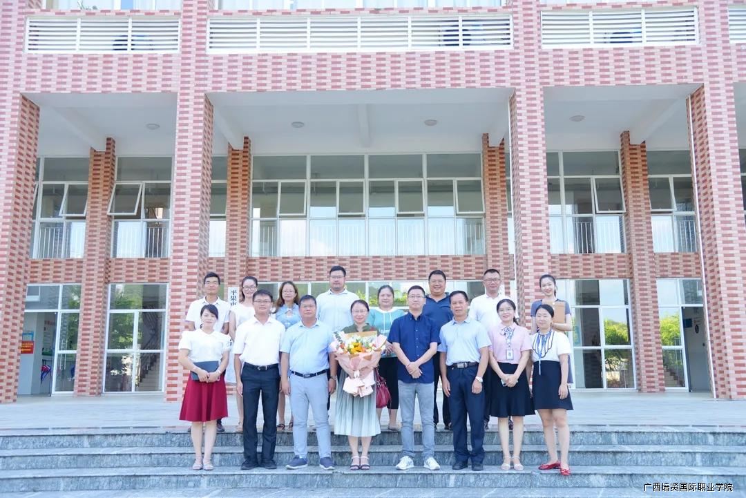 ▲校领导和李红梅教授、各部门负责人合影