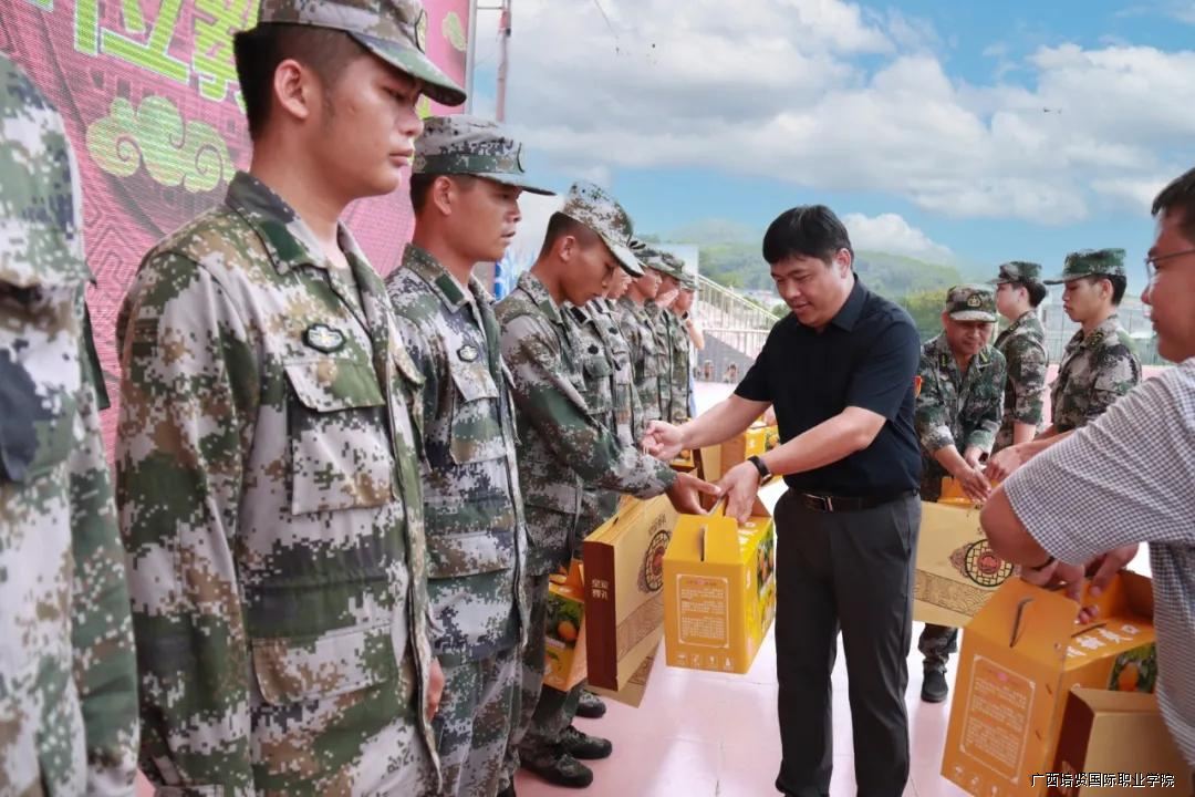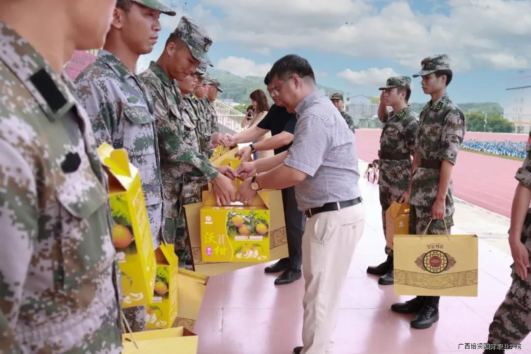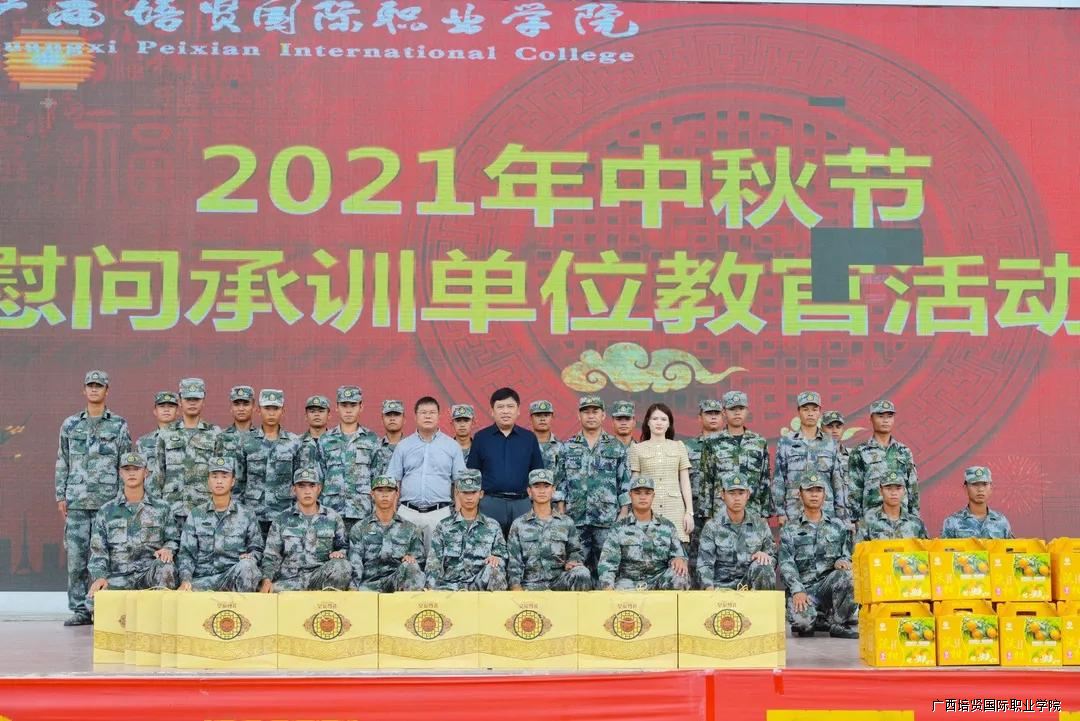 在学校运动场举行2021中秋节慰问承训单位教官活动✳️,党委副书记🧩、副校长黄勇学,副校长李锡武、陆蓝莎出席活动,并为辛苦训练的教官送上节日礼品🏄🏻。