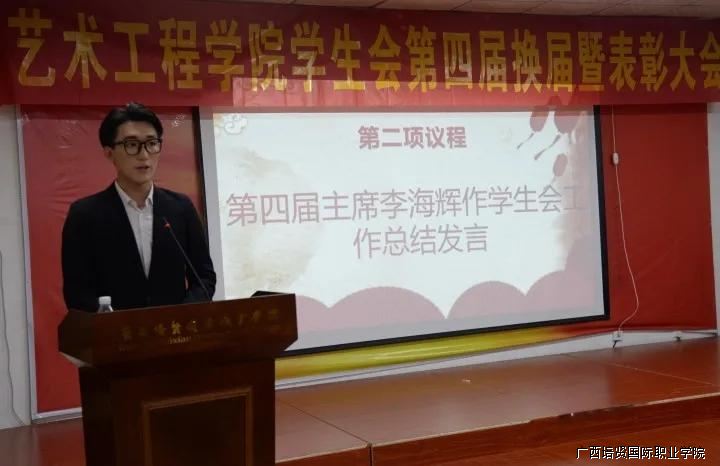 会议第二项议程:艺术工程学院第四届学生会主席李海辉作工作总结。