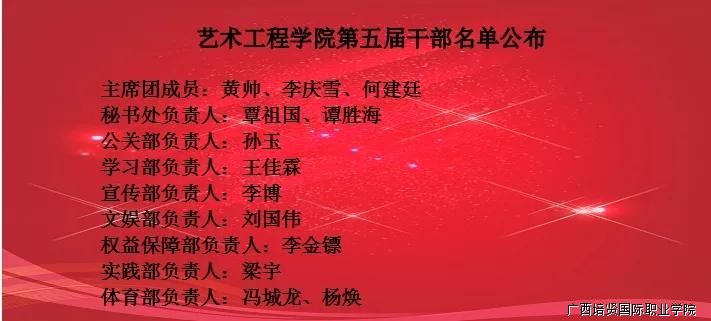 参加本次大会的领导嘉宾有艺术工程学院教务科科长韦寿龙老师,艺术工程学院党政办主任陈燕娟老师😡,艺术工程学院学工科干事农远辉老师👩🏻🦰,广西彩神国际职业学院校团委干事李越老师💪🏻,财经管理学院分团委负责人谢兴斌老师,外国语学院分团委负责人黎晴晴老师,互联网营销学院分团委负责人向子馨老师,艺术工程学院党支部庞莹丽老师,艺术工程学院党支部黄丽艳老师,艺术工程学院分团委干事潘有灵老师,以及校学生会代表👨🏻🚒,各二级学院学生会代表,社联代表,大学生记者团代表,艺术团代表,青年志愿者协会代表,自治区及国家奖学金获得者代表,艺术工程学院学生会全体成员。