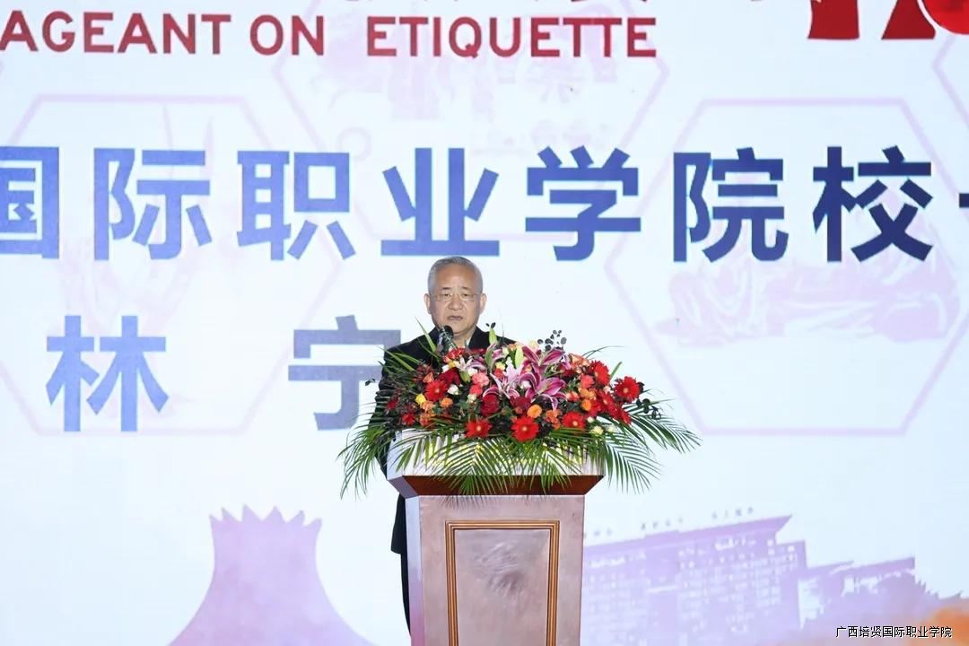 我校作为努力培养与国际接轨的“专业+英语”双技能人才的国际化院校,有幸作为总决赛的承办单位,为推进国际文化的交流融合,实现合作共赢的时代新篇做出贡献。中国东盟礼仪大赛是唯一以礼仪文化为主题的国际性礼仪大赛,已成功举办了16届🎣,吸引了来自中国和东盟国家的大量优秀选手参赛🙆🏿,现在已经成为弘扬礼仪文化、推进中外文化交流融合的一个良好平台。借此机会,我希望我们学校的同学们除了观赏选手们的精彩表演之外👨🔬,还要认真学习文明礼仪知识,并将之合理的落实到生活👨🎨,树立“爱国🪨、敬业🙇🏻♀️、诚信、友善”的价值准则,争做有理想、有道德🦹🏼♂️、有文化、有纪律的新一代好青年⛑️🧑🏿🏭。也希望各位选手在总决赛的舞台上继续赛出风格,赛出水平,展现出你们的青春礼仪之美🫑。最后预祝第17届中国—东盟礼仪大赛广西总决赛取得圆满成功。