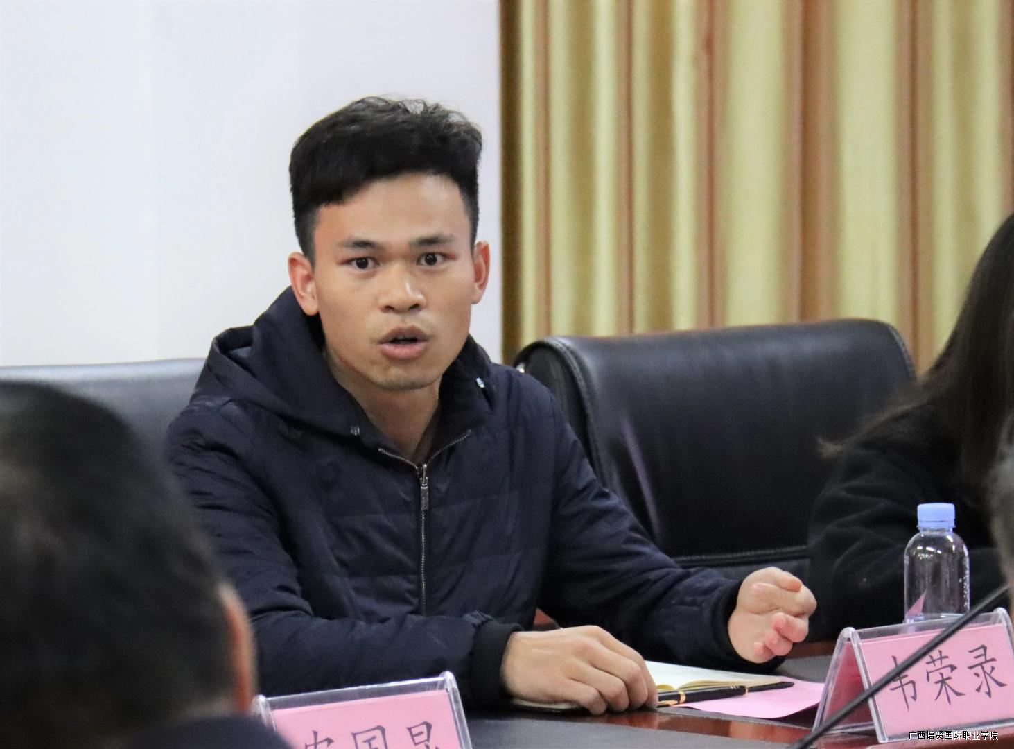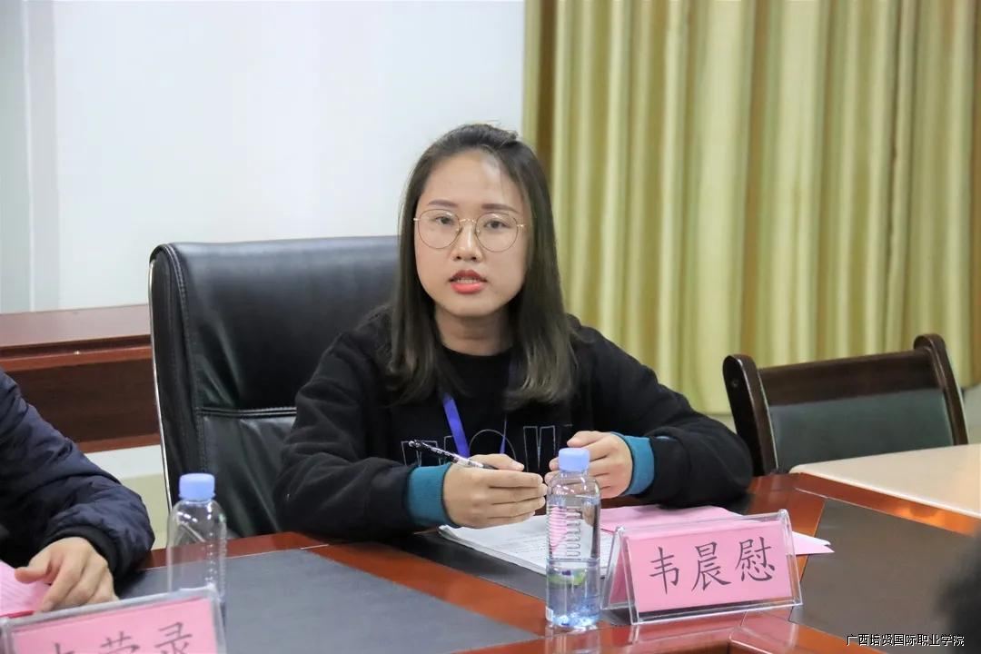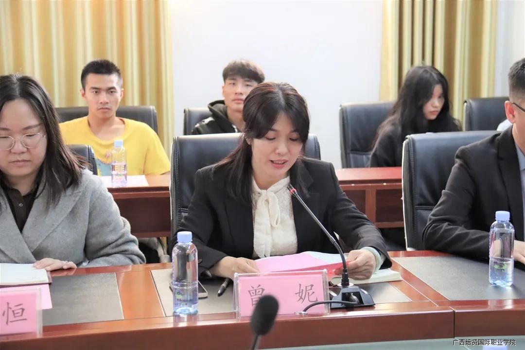 参会人员还有我校人力资源管理教研室主任韦荣录,物流管理专业负责人杨成贵🦗,室内设计专业教师韦晨慰,室内设计专业教师雷文洁,培训部干事和自考学生代表🆓🆘。工作交流会在105会议室召开🧔🏼♀️,会议由培训部负责人曾妮主持。