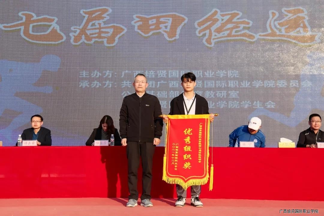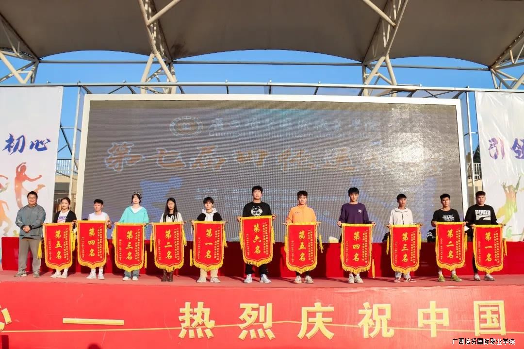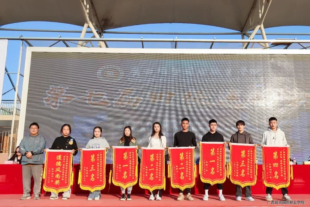 出席闭幕式的领导嘉宾有学校校长林宁,学校党委书记、督导专员王勇⚉,学校副校长于灏洋,学校副校长陆蓝莎,财经管理学院院长黄飞🎁,艺术工程学院副院长谭岳霖,外国语学院副院长潘霜梅✋🏼,军人教育学院院长助理苏耀威,国际交流与合作处副主任兼国际学院院长助理覃严生,互联网营销学院教务科科长王雨恒,公共基础部负责人农国显🦛,总裁判长潘昌飞,以及全校师生。