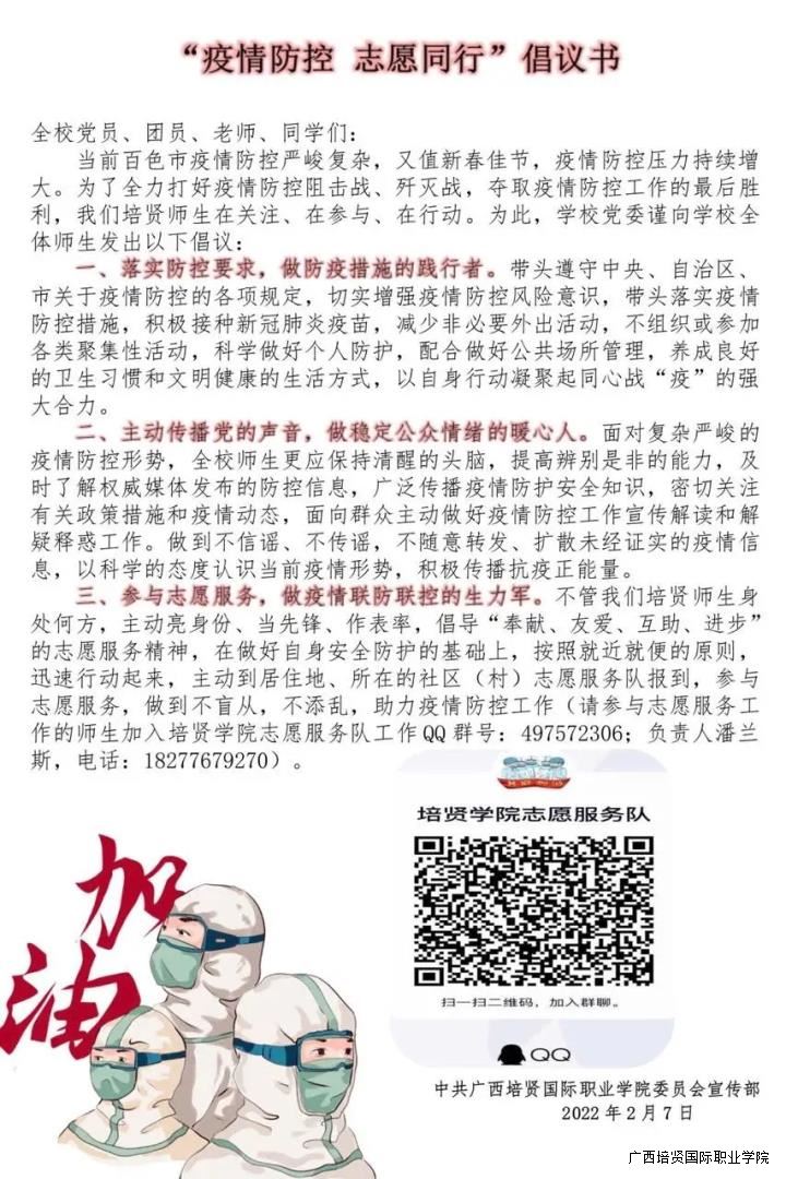 我校致全体师生“疫情防控 志愿同行”倡议书