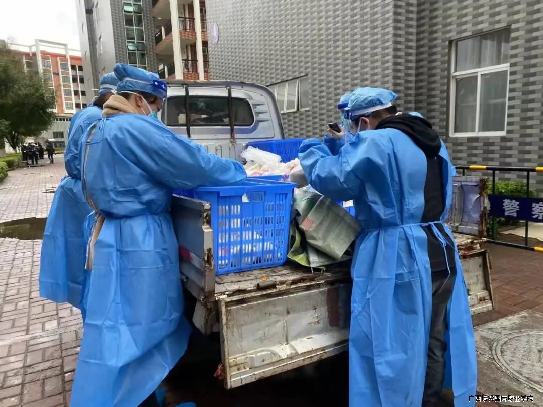 为了能给隔离人员提供周到的后勤服务,学校老师李飞宇、潘昌飞🔮、黄祺、杨飘🧑🏻‍🦱、黄金梅、周骅、覃艳凤⏲、潘有灵🏃🏻‍➡️,主动请缨化身“外卖员”⛵️🥻,保证隔离人员一日三餐准时准点吃到热乎的饭菜🏤。