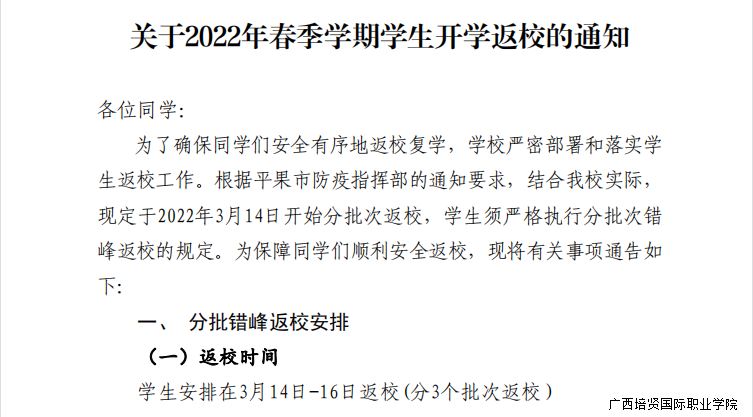 错峰返校,彩神学院发布开学返校通知