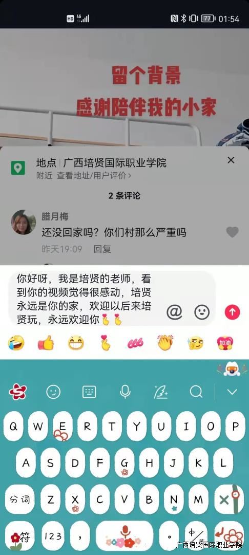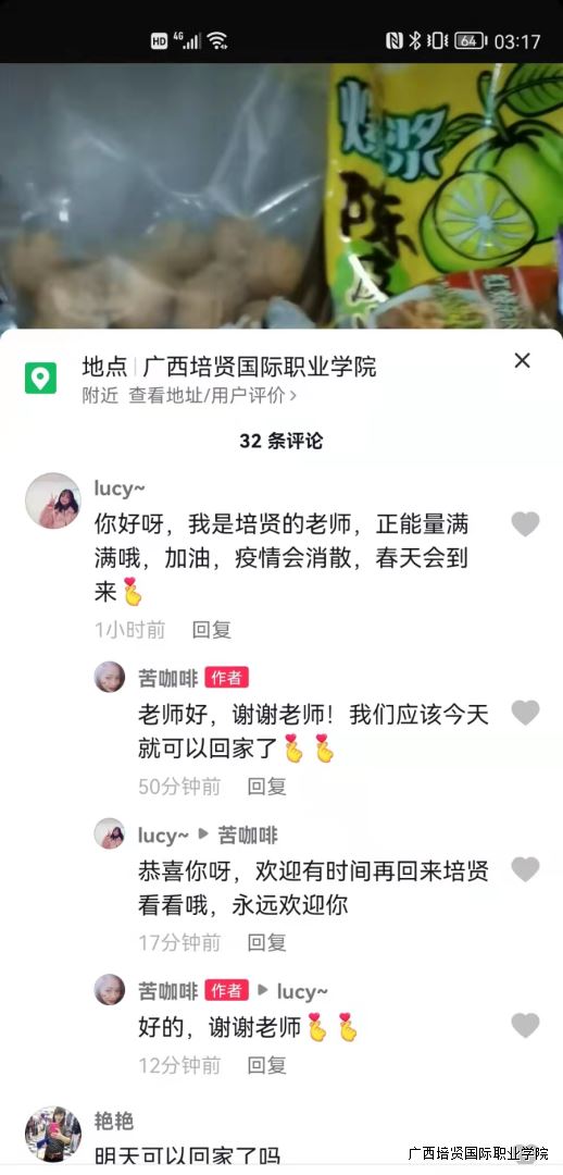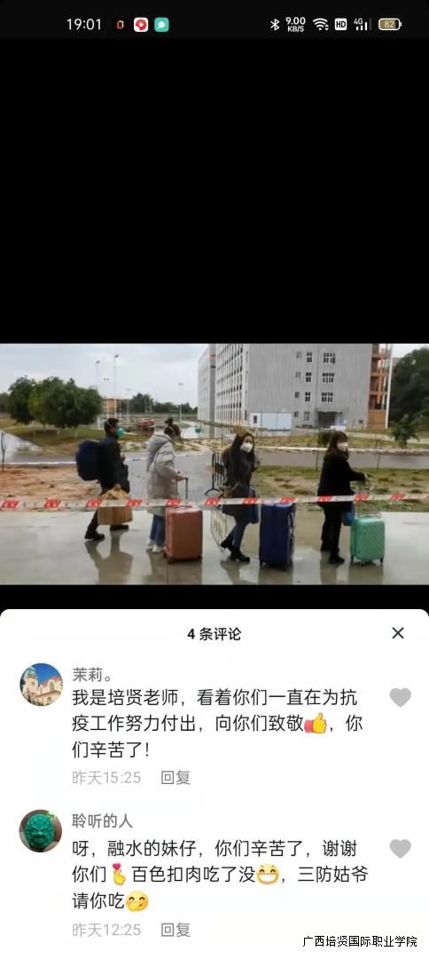 隔离期间,隔离人员也在抖音平台上🍻,将自己在隔离期间的生活拍成视频记录点滴,我校老师也纷纷在抖音上跟他们互动,沟通交流🧑🏼💼、相互鼓励,为战胜疫情竖起坚不可摧的心理防线。